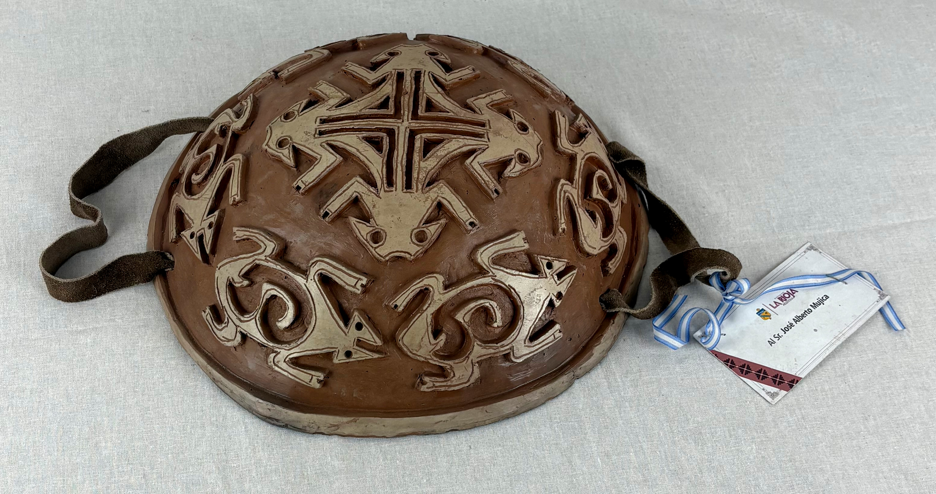 "JABIF, ESCUDO PECTORAL DE COMBATE CULT DIAGUTA C/FIG. DE SAPOS VIDA LOS 4 PUNTOS CARDENLES REPLICA INDIGENA ARGENTINA"