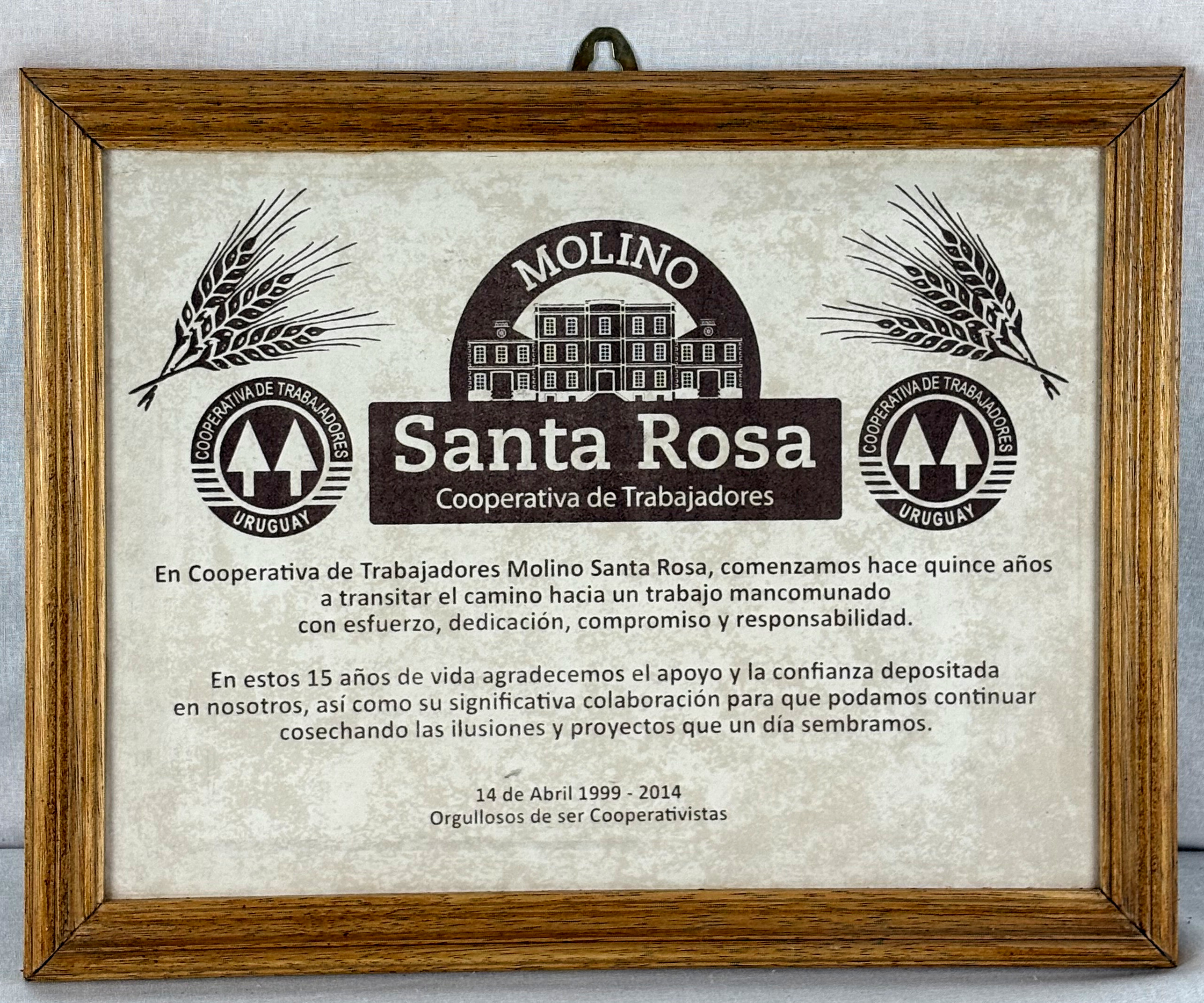 Cerámica enmarcada en madera con texto impreso a tinta