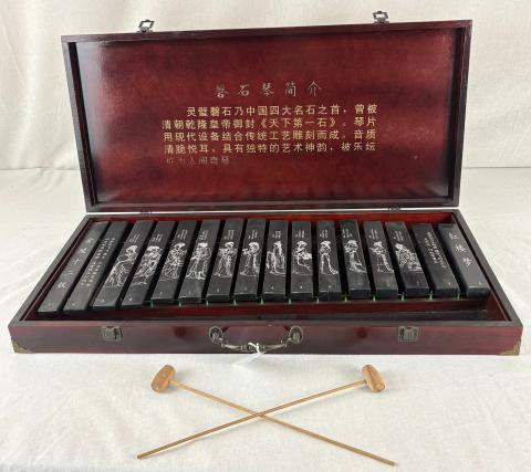 Instrumento musical realizado con piedras "Lingbi Qingshi", obsequio del gobierno de la República Popular China.