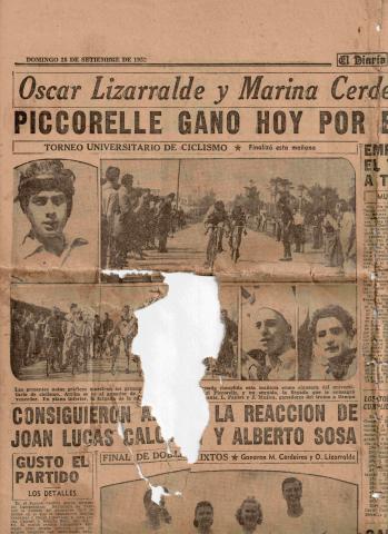 Recorte de prensa sobre Pepe en el Torneo Universitario de Ciclismo de 1952 - El Diario 28-9-1952
