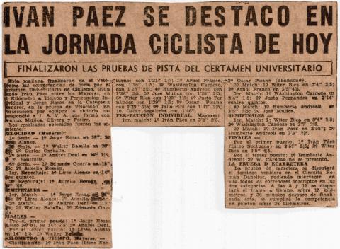 Recorte de prensa sobre Pepe en el Torneo Universitario de Ciclismo de 1952