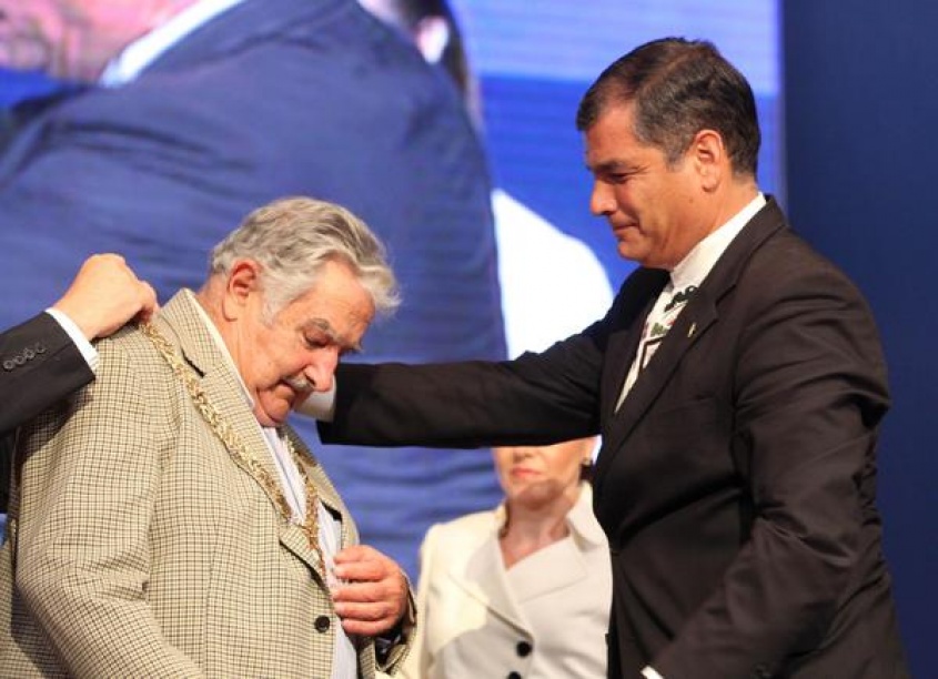 José Mujica recibió de manos del presidente de Ecuador, Rafael Correa, la «Orden Nacional al Mérito» de Ecuador en el grado de «Gran Collar» en 2014, la máxima distinción que otorga el país, durante un evento en el que se reconoció su solidaridad y su papel en la integración latinoamericana.